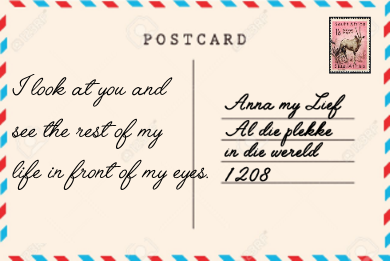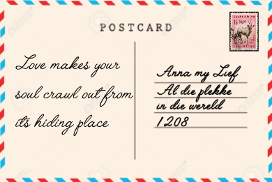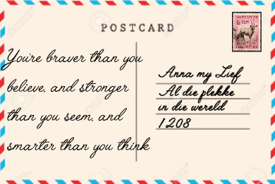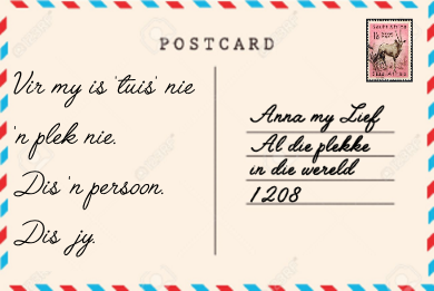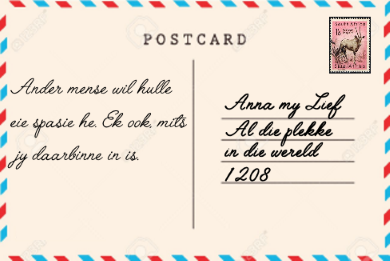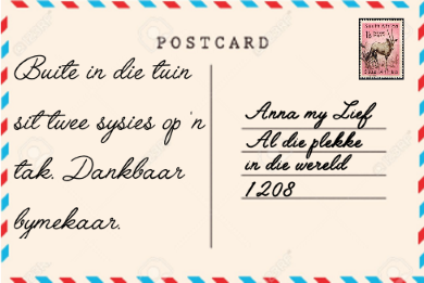 Klik op 'n poskaart om te flip