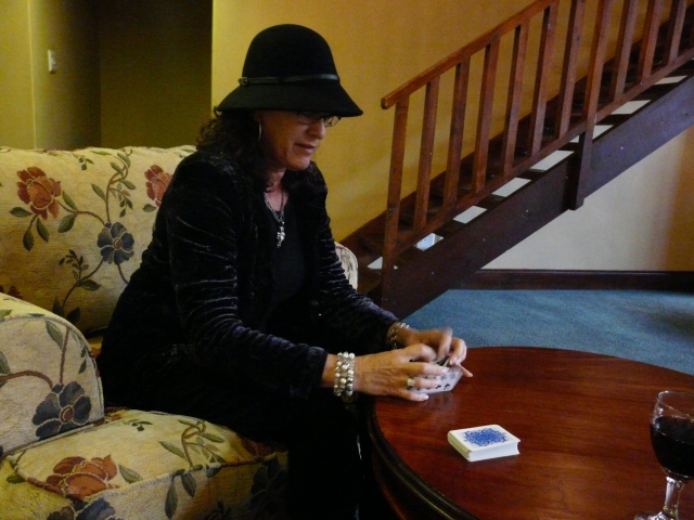 It started raining. Or rather, pouring, and we hastily repaired to the hotel for a quiet afternoon of drinking wine and playing cards. Write this down somewhere. Do not play cards with Anna. She is a bloody card sharp. Bottom deals, middle deals, false cuts, cards in the bra - she can do them all.