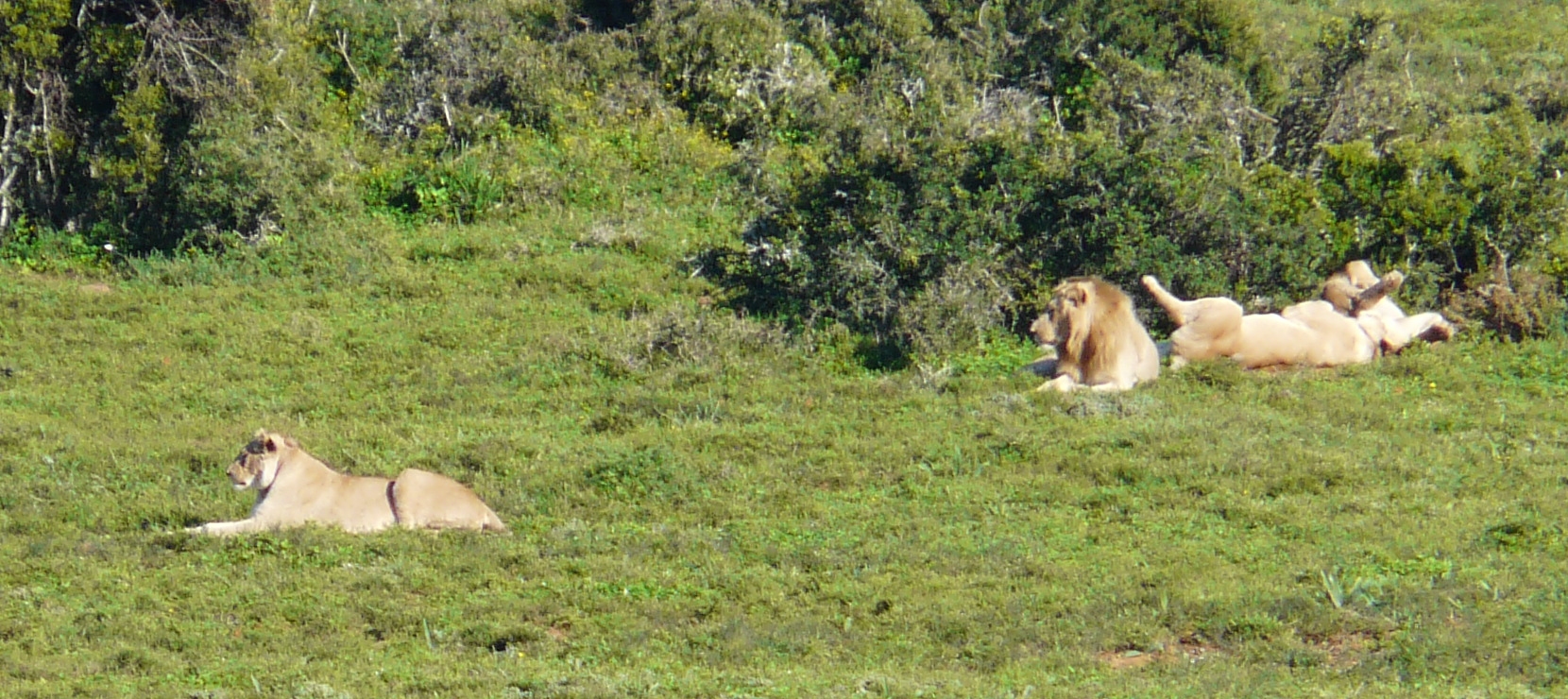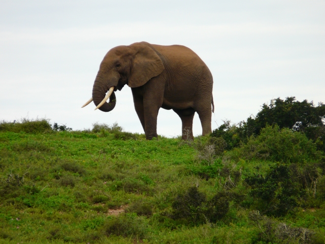 The mielies turned out hard, but still edible. We had salads and grilled chicken for Anna and a glorious T-Bone steak pour moi. The next morning we set out to explore the park. Addo was a huge disappointment. It is not the African bush - more like the African shrubs. No trees in sight at all, just low shrubs. This is just not what the flora in a game park should be. There should be trees, dammit! It does not feel right, somehow, to see the animals in the shrubland. The place is also seriously small. A 5 hour drive will see you negotiate all the roads in the park. Because of its size, the outside world is never far away and one frequently see Port Elizabeth, or a railway line or neighbouring civilisation in some form or other. Never got the feeling of being away from it all. The variety of game is iffy. Expect to see lots of elephants, kudu, warthogs and zebra. Very little else. Here are a few obligatory animal pics.