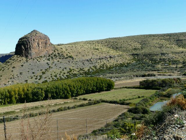 The next morning we took our leave of Bruno and visited the Kitching fossil centre. Mildly interesting. Outside town we passed a typical Karoo rock formation overlooking a fertile valley.