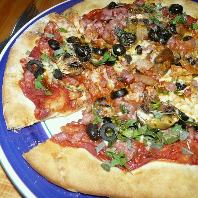 We ordered a spinach and an olive and ham pizza, drank wine and talked. Bruno and I sang, to the horror of the few other diners. The pizzas were surprisingly good.