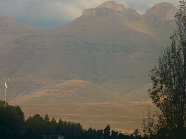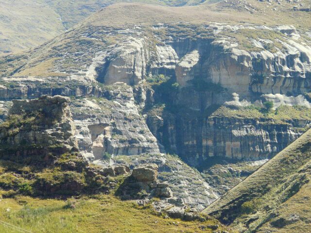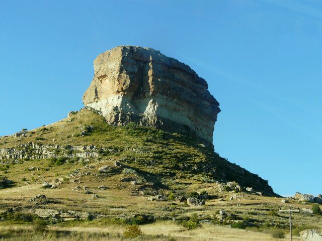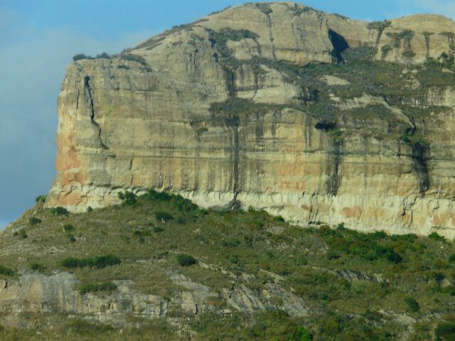 Approaching Clarens the landscape is defined by huge buttresses of weathered sandstone.
