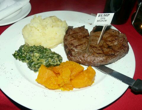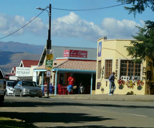 Anna bought the odd small thingy. Mostly for the grandchildren. We peered at fine art, trying to look knowledgeable. We looked at oodles of overpriced decorative art. And nary a twitch revealed her purpose, nor a glance her dastardly plan. Damn! Tee-hee We must have done something wrong. To be punished like this with bad food. It is not as if we are picky foodies. We appreciate all food that is prepared without pretense and with love. Despite this we seem to bring out the worst in the eateries we encounter. Lunch on our second day in Clarens was a case in point. (I'll skip breakfast. It was the same old same old. Floppy bacon only suited for swatting flies, dry yellow stuff masquerading as eggs.) We wanted something small and thought Vito's, an Italian place below our guest house might be just the thing. Hah! A garlic focaccia and two portions of snails, accompanied by a modest merlot was ordered. The merlot was quaffable, the focaccia was fine and the snails were vrot. As in off. As in stinky off. We are doomed. Doomed I tell you. Anna thinks it is all due to stuff left over from the long weekend. So maybe the lesson is not to visit isolated villages just after a long weekend..... We spent the afternoon snuffling around the shops and coffee places. Most pleasant. The evening's dinner was due at The Highlander. Anna had a chicken pot pie that was pronounced very good. I tried rump steak. It was not bad. Not great, but not bad. Maybe we are breaking our streak.