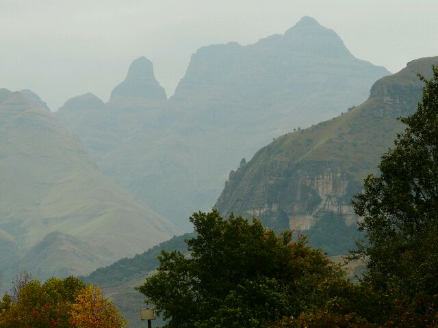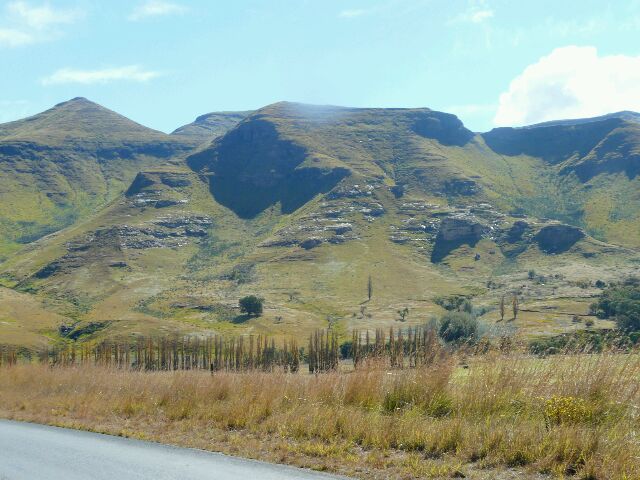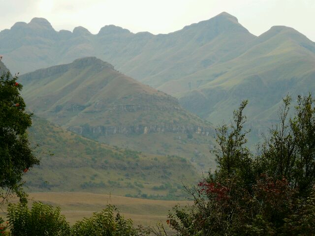 The woodwork in the rooms is interesting, the tree house concept sort of faery-like, but in the end the consensus was that the place is way overpriced at R750 per person, dinner and breakfast included. The folk running it are friendly and engaging, but are clearly in need of some professionalism. After a modest breakfast we bid adieu to Bonnie and Clyde and set off for Cathedral Peak. We wanted a spot right in the Drakensberg and CP, as us old hands call it, seemed to fit the bill. We wend our way through rural Kwazulu Natal, the landscape dotted by houses, huts, schools, kraals, cattle and goats.
