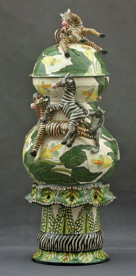 Butternut soup, fillet steak (Innkeeper), stuffed chicken breast (Anna) and malva pudding. Really good. Except for the malva which was stodgy. Entirely due to Anna not reminding him, the Innkeeper did not take pics of the meal. It had, I assure you, nothing to do with the amount of wine we consumed. I will rectify this next dinner. Next day we will venture forth on the meander. Is this the day when we will learn the true nature of Anna? Will her true intent at last become known? Will she keep us in suspense? Tune in tomorrow for the answer. We came to the Midlands mainly because it is there. A place that neither of us have seen. And because the place is jampacked with arty people. We would therefore, whilst admiring the scenery, be able to better our artistic appreciation. Philistines that we are, art-wise, this seemed to be a splendid idea. Hah! We clearly have no idea. I can, on an intellectual level, understand that practically anything can be regarded as art if an artist wishes to make it so. On a purely visceral level, though, I recoil at art that is ugly. Ugly as in ugly. A turd has been exibited as art. Art? Maybe. But ugly? For sure. So we ended up at Ardmore Ceramics. Highly collectable pieces made by a group of black artists. Sought after. R200,000 on auction for a vase. The Queen has one. So has Hilary Clinton. This is what their work looks like. Ugly.